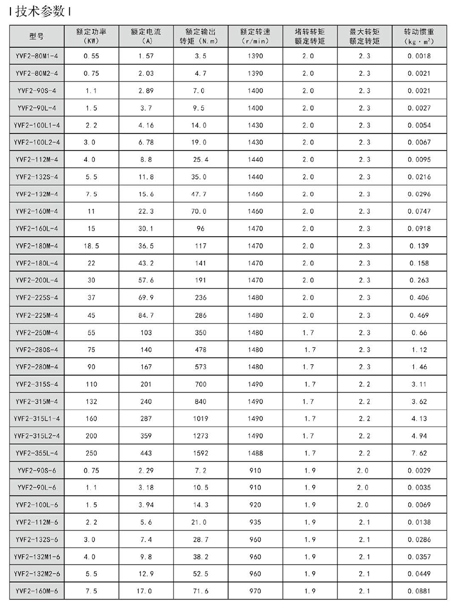 YVF2系列變頻調(diào)速三相異步電動機,提高了防護等級和絕緣等級,降低了噪聲,其電機結(jié)構(gòu)更加合理,外形新穎美觀、安裝尺寸及功率等級符合IEC標準,外殼防護等級為IP54。電動機的定額是以連續(xù)工作制(S1)為基準的連續(xù)定額,額定電壓為380V,F(xiàn)級絕緣,額定頻率為50HZ。本系列電動機采用了獨立的冷卻結(jié)構(gòu),采用軸流風機強迫通風冷卻,確保電機在低速恒轉(zhuǎn)矩下長期運行時溫升不超過允許值。
